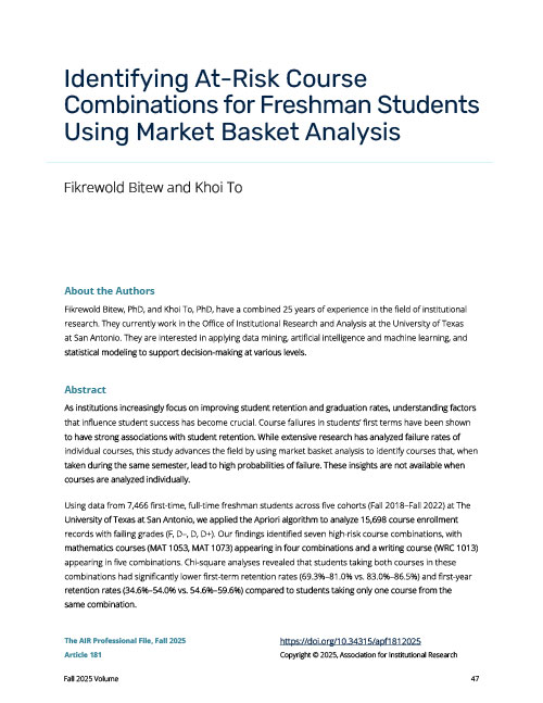 Article 181: Identifying At-Risk Course Combinations for Freshman Students Using Market Basket Analysis