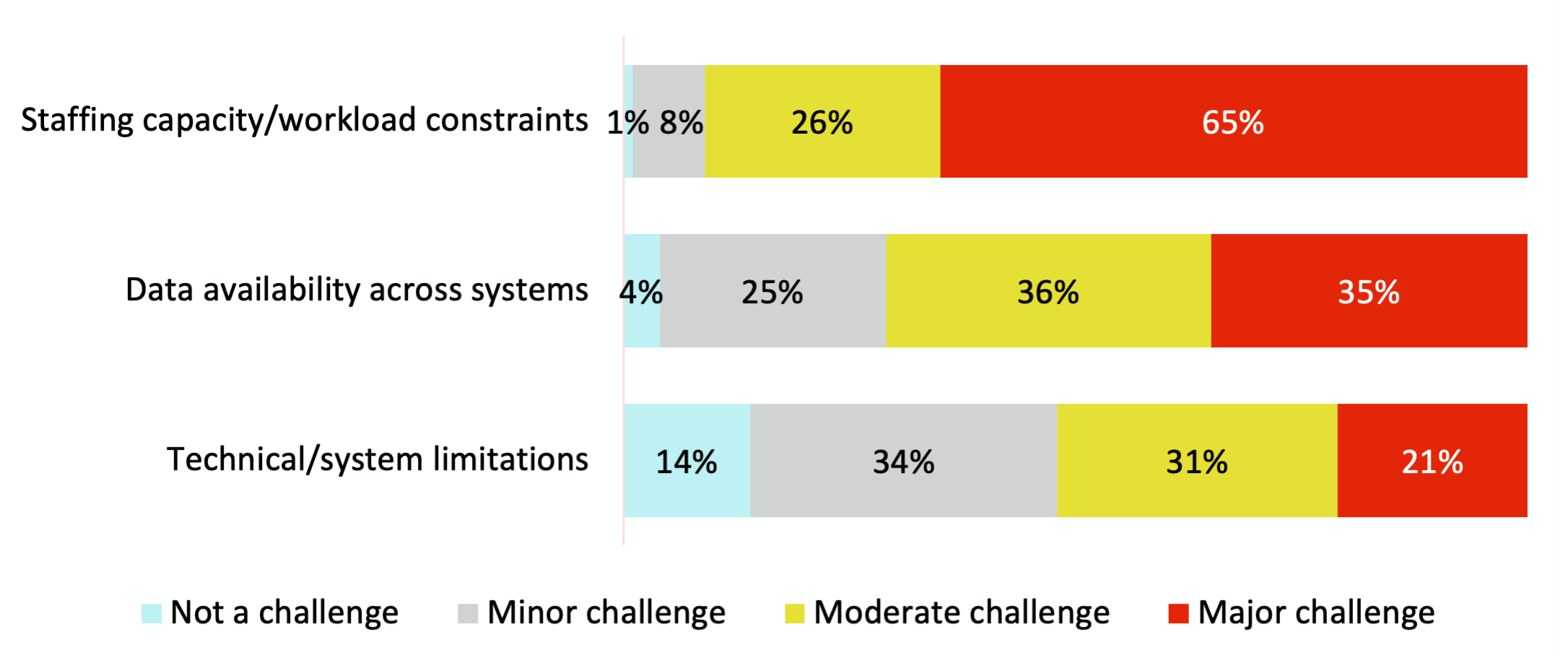 | Staffing capacity/workload constraints | 1% | 8% | 26% | 65% |