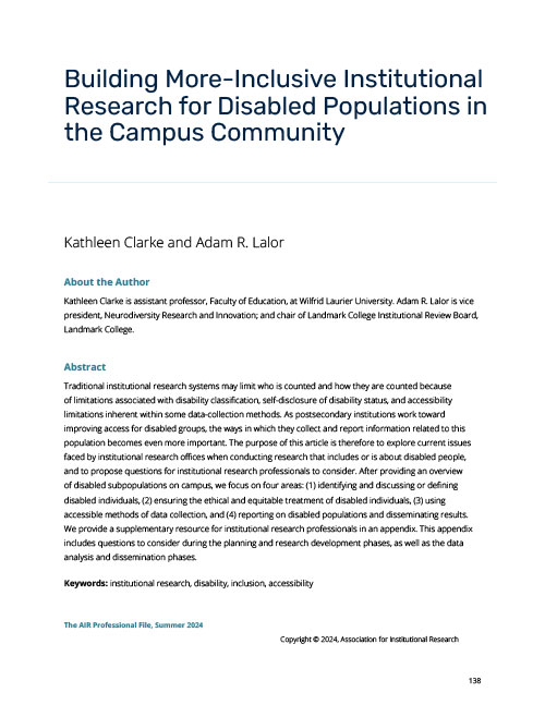 Building More-Inclusive Institutional Research for Disabled Populations in the Campus Community
