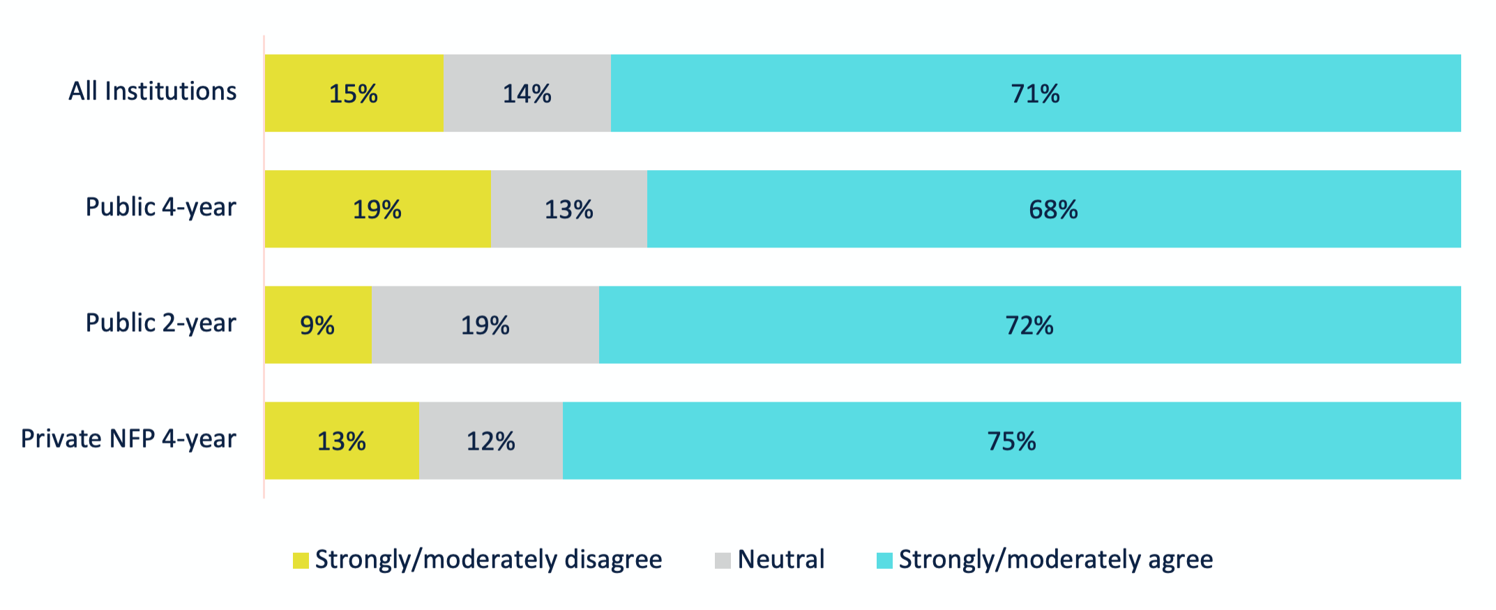 The findings presented in this report are based on 520 responses that represent U.S. postsecondary, degree-granting institutions at public 4-year (146 institutions), public 2-year (125 institutions), or private not-for-profit 4-year institutions (249 institutions).
